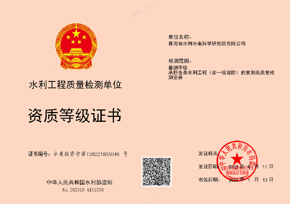 • 水利工程質量檢測單位資質等級證書(量測類)